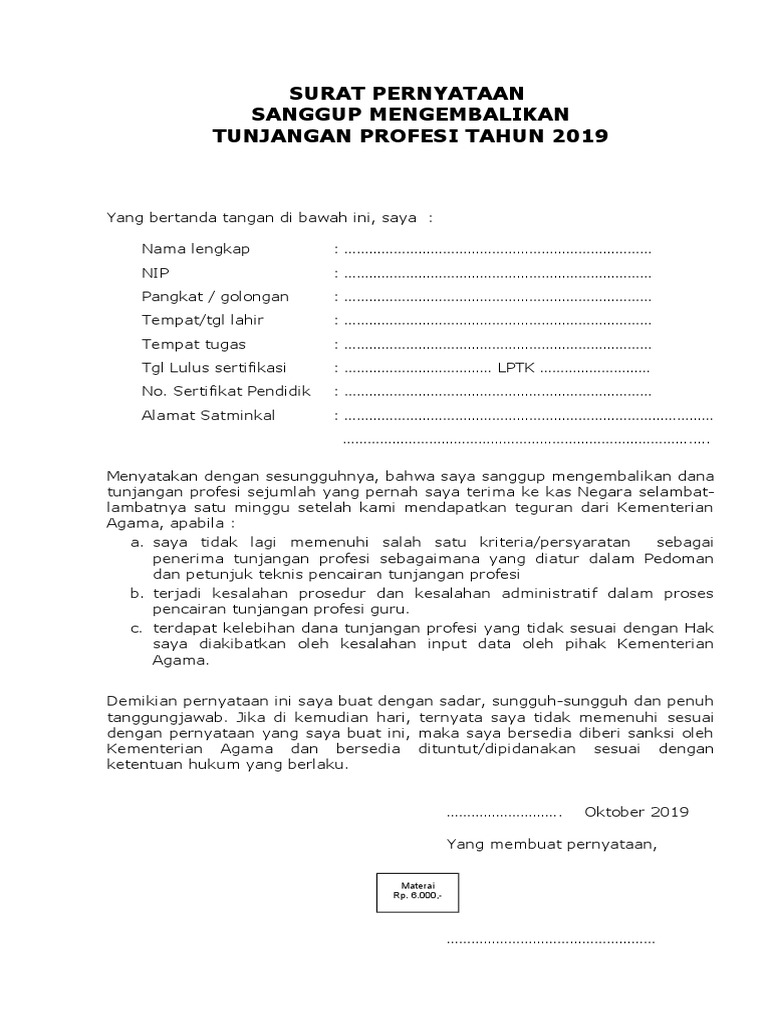 Azkiya store dan sanggup untuk melepaskan jabatan sebelumnya, yakni sebagai staff produksi. Tanggal dan tempat surat sanggup ditandatangani. Demikian surat pernyataan kesanggupan ini dibuat sebagai salah satu syarat pengajuan piagam terdaftar dan nomor statistik taman pendidikan al qur'an. Kulon progo, 4 februari 2018. Contoh dari surat pribadi adalah surat izin dari orang tua untuk sekolah , surat cinta dari pasangan, surat.